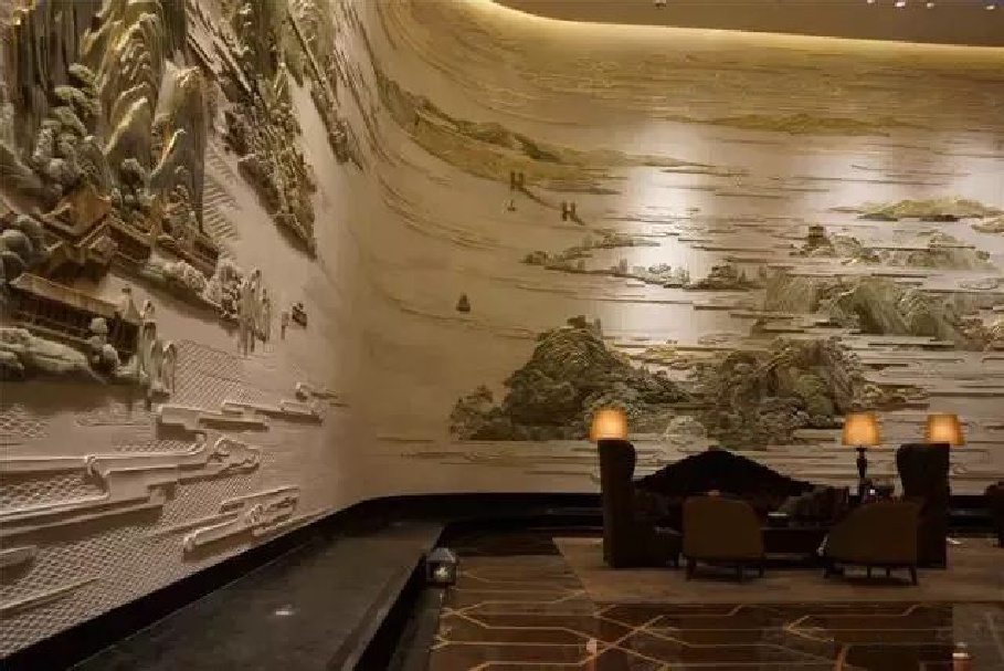 創(chuàng )作了這幅大型彩玉浮雕壁畫(huà)